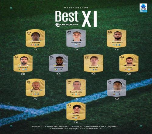 雷速體育9月30日報道宣稱 今天意甲官方公布了意甲聯(lián)賽第5輪最佳陣容。