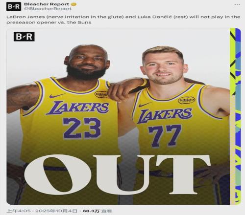北京時(shí)間10月4日,NBA季前賽:湖人vs太陽(yáng),這是美國(guó)本土季前賽的揭幕戰(zhàn)。昨天兩場(chǎng)季前賽,都是在海外進(jìn)行的(阿聯(lián)酋和澳大利亞)。距離比賽開(kāi)打僅剩6個(gè)多小時(shí),湖人官方宣布:東契奇退出對(duì)陣太陽(yáng)和勇士的兩場(chǎng)季前賽。