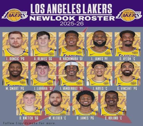 2025-26賽季開(kāi)始之前,湖人的陣容名單:東契奇、詹姆斯、里夫斯、文森特、斯瑪特、克內(nèi)克特、八村壘、范德比爾特、拉拉維亞、艾頓、海斯、克萊伯、阿杜-蒂耶羅、布朗尼、尼克-史密斯、科洛克、克里斯-馬農(nóng) 。