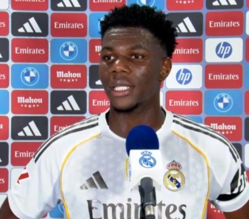 雷速體育10月5日?qǐng)?bào)道宣稱 西甲第8輪,皇馬坐鎮(zhèn)主場(chǎng)3-1擊敗比利亞雷亞爾。賽后,皇馬中場(chǎng)楚阿梅尼在混合采訪區(qū)接受了采訪。