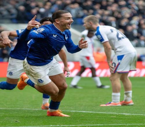 比賽第96分鐘,終場(chǎng)哨聲即將響起,雙方1-1僵持。就在所有人以為戰(zhàn)平已成定局時(shí),埃弗頓右路的一次傳中造成禁區(qū)混亂,水晶宮的穆尼奧斯從英雄變?yōu)椤白锶恕?,慌亂解圍,卻陰差陽(yáng)錯(cuò)地把球踢在格拉利什身上,皮球彈射入網(wǎng)!進(jìn)球之后,格拉利什沒(méi)有壓抑任何情緒,他跪地怒吼、雙拳捶胸,整座古迪遜公園在這一刻化為藍(lán)色海嘯。