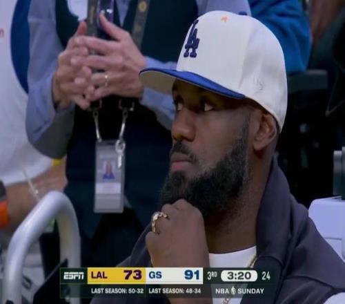 本場比賽詹姆斯坐在替補(bǔ)席觀看兒子布朗尼比賽,而布朗尼也比較爭氣,6投2中,三分球3投1中!表現(xiàn)比第一場12投1中好太多了。